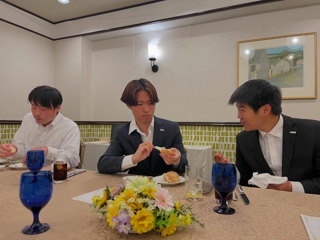 諫早市のホテルグランドパレス様にお世話になり、事前の簡単な講習と、料理がでるごとにマナーのポイントを教わりました。
